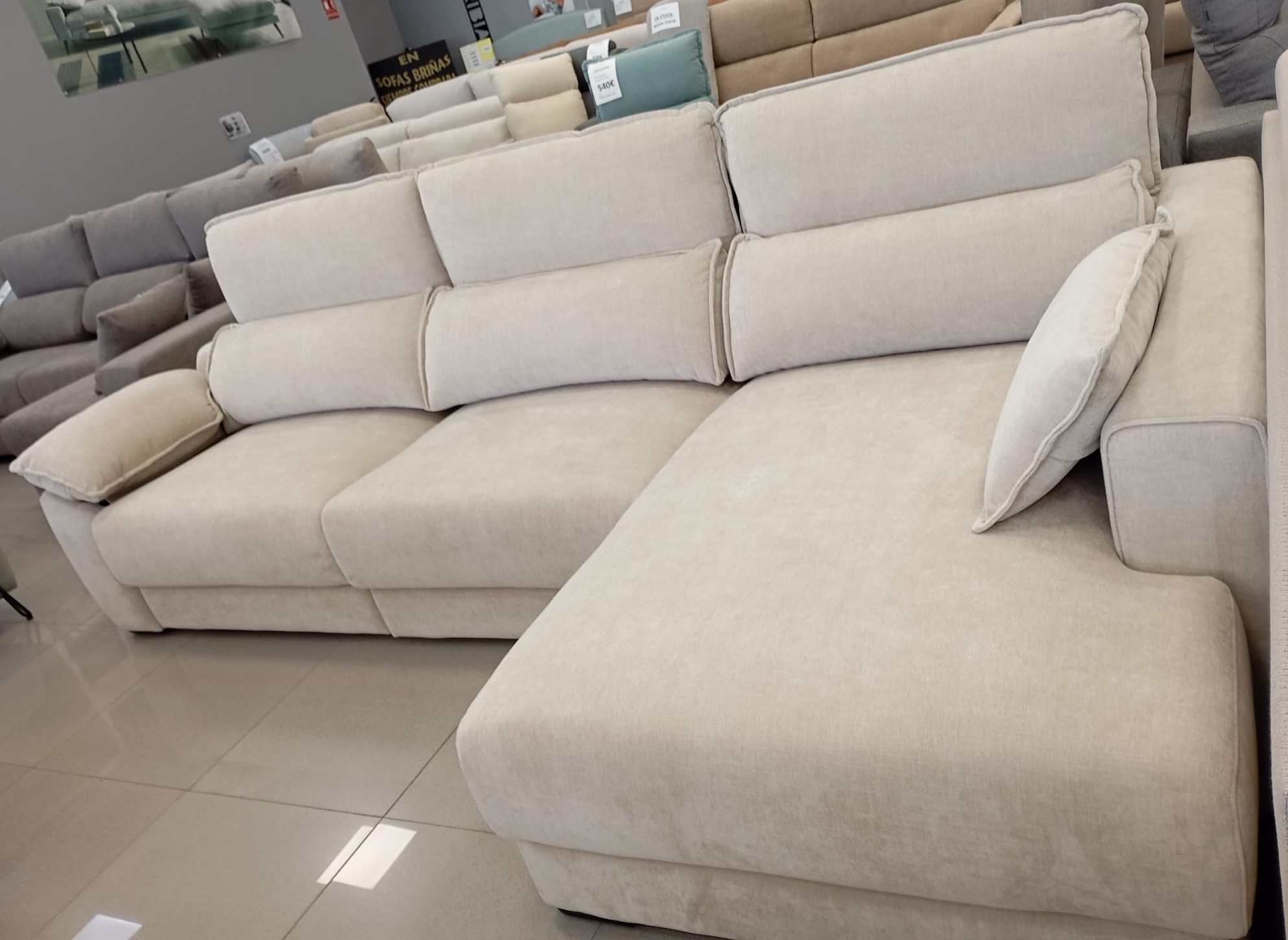 RECLINABLE, EXTENSIBLE AL SUELO, BRAZO DESLIZANTE,ARCÓN BRAZO Y CHAISELONGUE. COLOR STOCK
