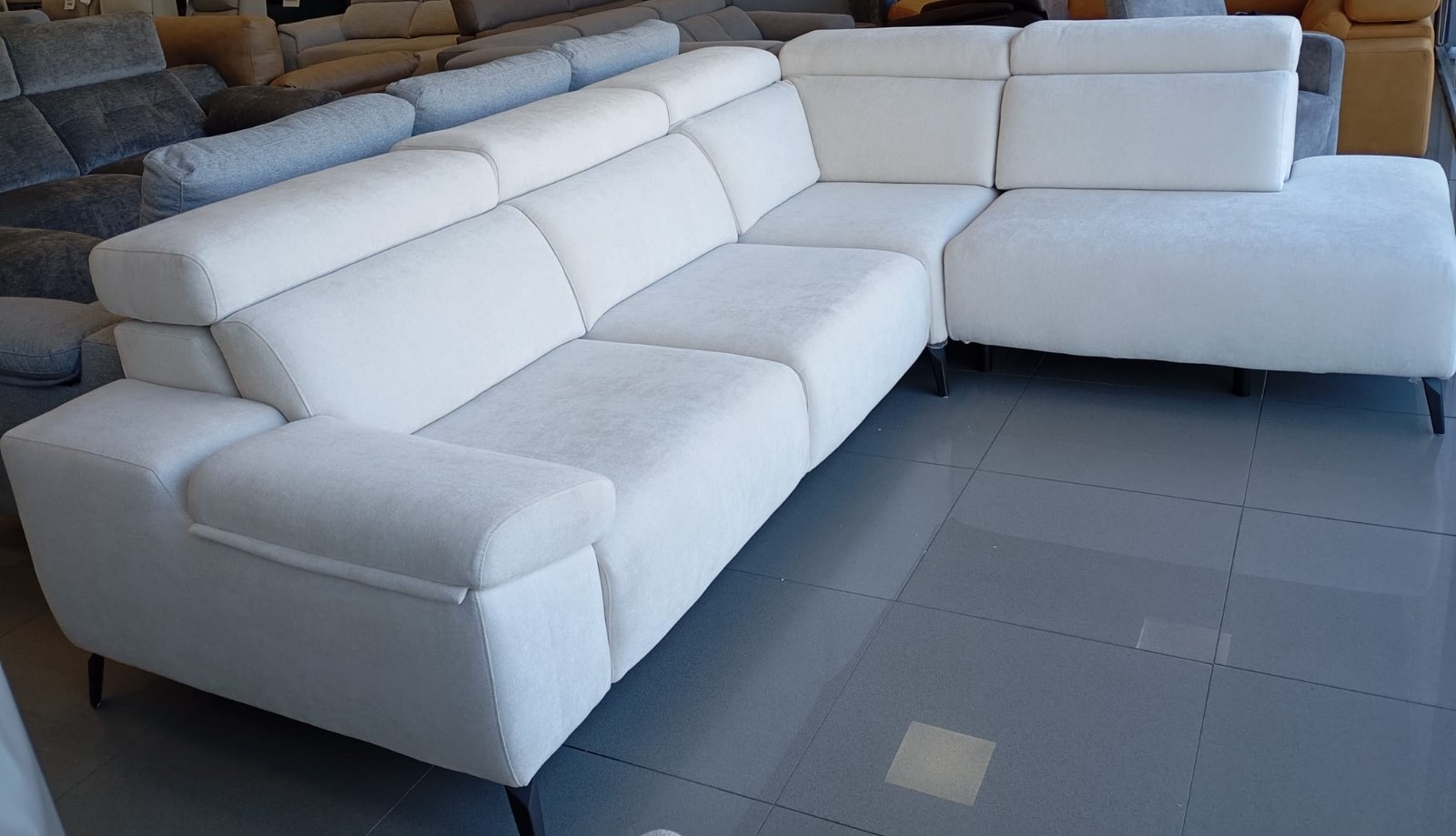 Sofá con brazo arcón y deslizante, deslizante al suelo con carro y cabezal reclinable italiano.