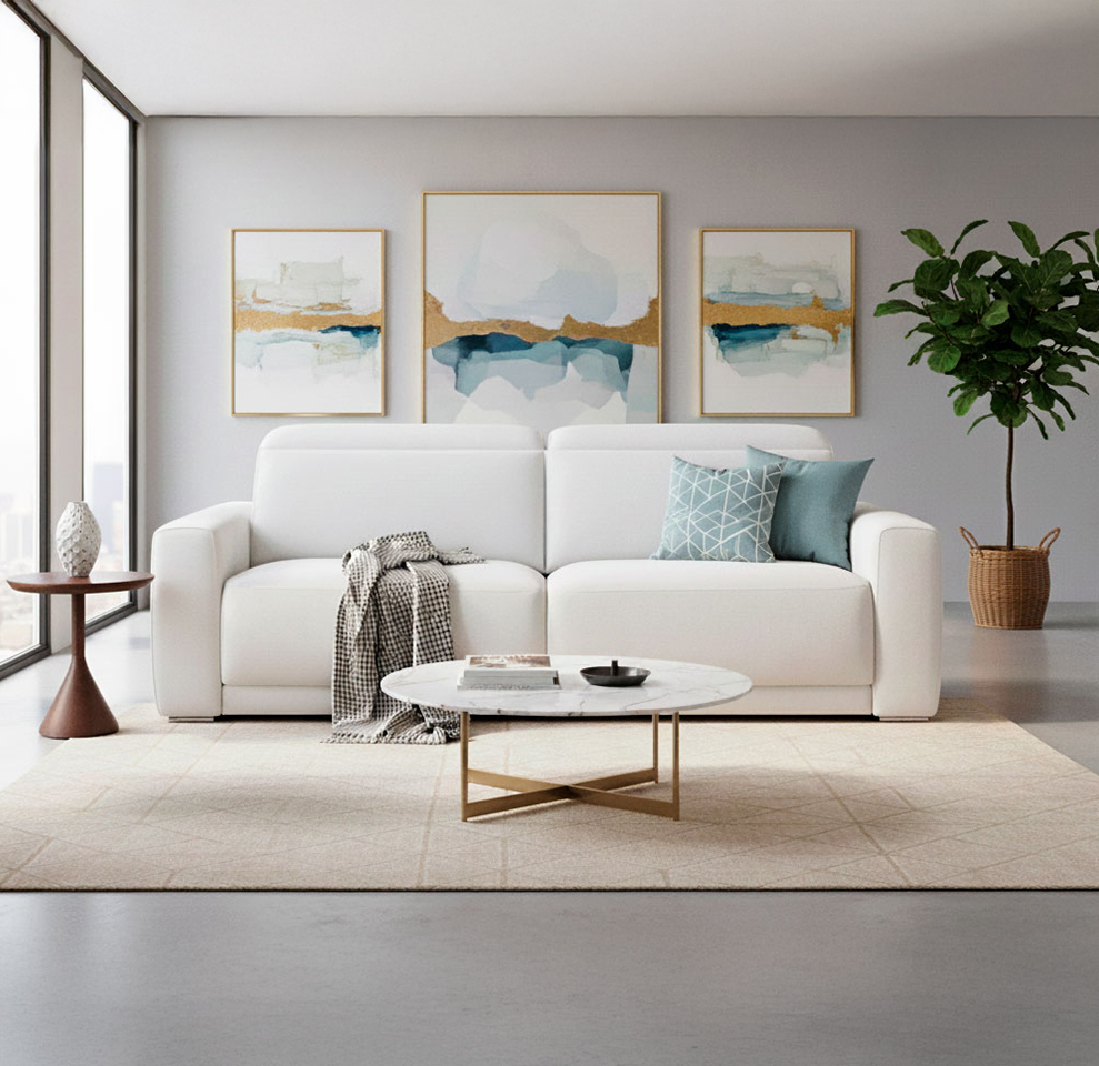 SOFÁ 3 PLAZAS CON DOS MOTORES RELAX. TAPIZADO EN PIEL