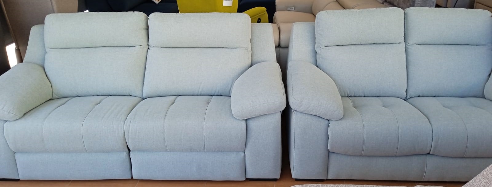 SOFÁ 3PL DOS MOTORES + SOFÁ 2PL EXT. TEJIDO ANTIMANCHAS. TAL CUAL FOTO
